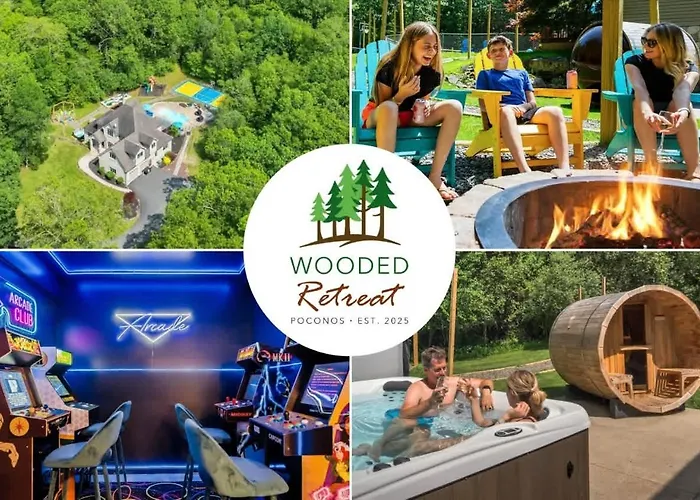 Juntamente com o acesso a locais naturais como Big Pocono State Park, a 3.9 km de distância, a pousada Sleeps 14 Pool Hot Tub Sauna Pickleball Arcade Stroudsburg dispõe de piscina privada. Proporcionando aos hóspedes Wi-Fi e o parque de estacionamento, a pousada fica a 15 minutos de carro de Great Wolf Lodge Waterpark.